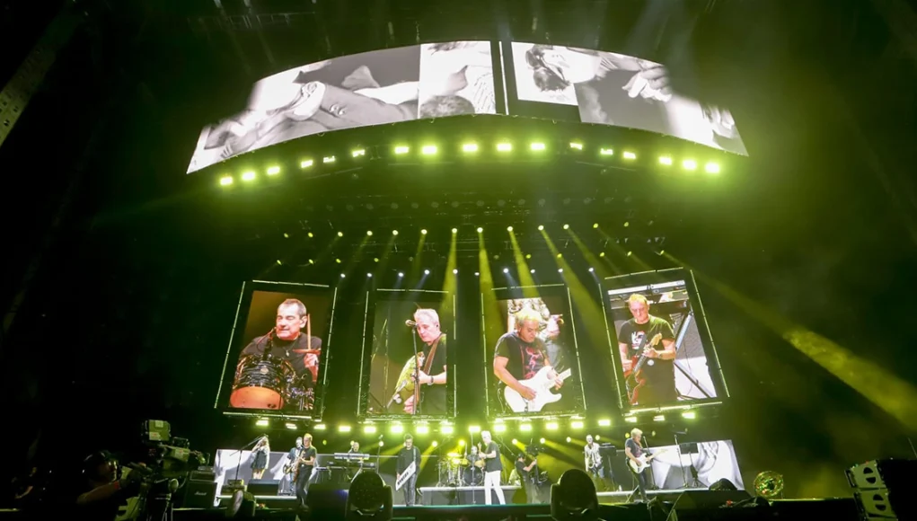 El escenario, sencillo pero rodeado de pantallas que proyectaban letras, videos y fotos de archivo, funcionó como cápsula del tiempo, resaltando los 40 años de historia de Hombres G. Durante dos horas interpretaron 26 temas en un show que se convirtió en el más concurrido de su carrera en México.