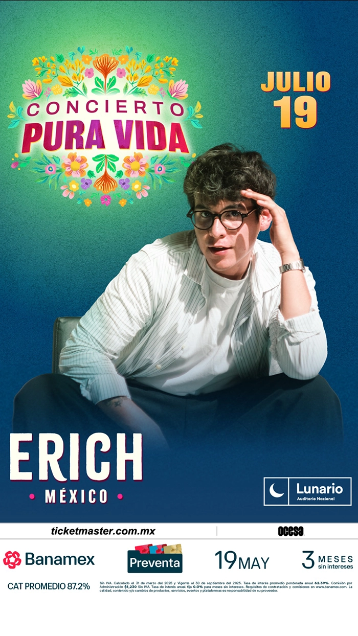 Erich llevará esta nueva propuesta al escenario el próximo 19 de julio en el Lunario del Auditorio Nacional, como parte del evento Pura Vida. Esta presentación será la primera vez que el público escuche “Qué Haré” en vivo, y promete ser un momento especial para quienes han seguido su trayectoria desde sus primeros lanzamientos.